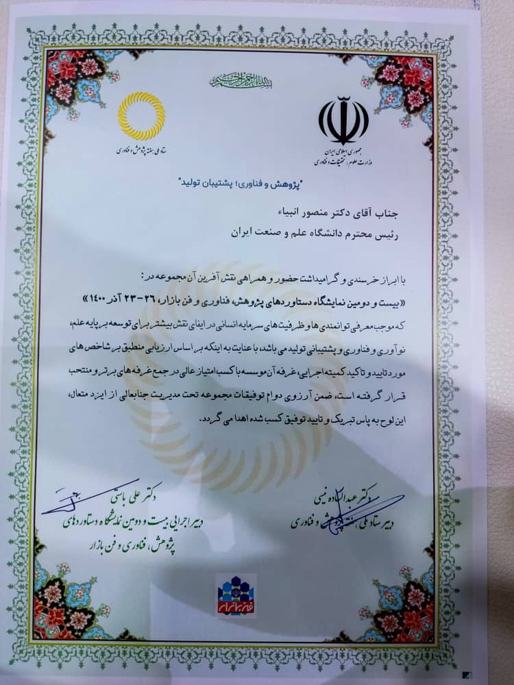 در روز پایانی بیست و دومین نمایشگاه دستاوردهای پژوهش، فناوری و فن بازار غرفه دانشگاه با کسب امتیاز عالی به عنوان یکی از غرفه های برتر و منتخب شناخته شد.